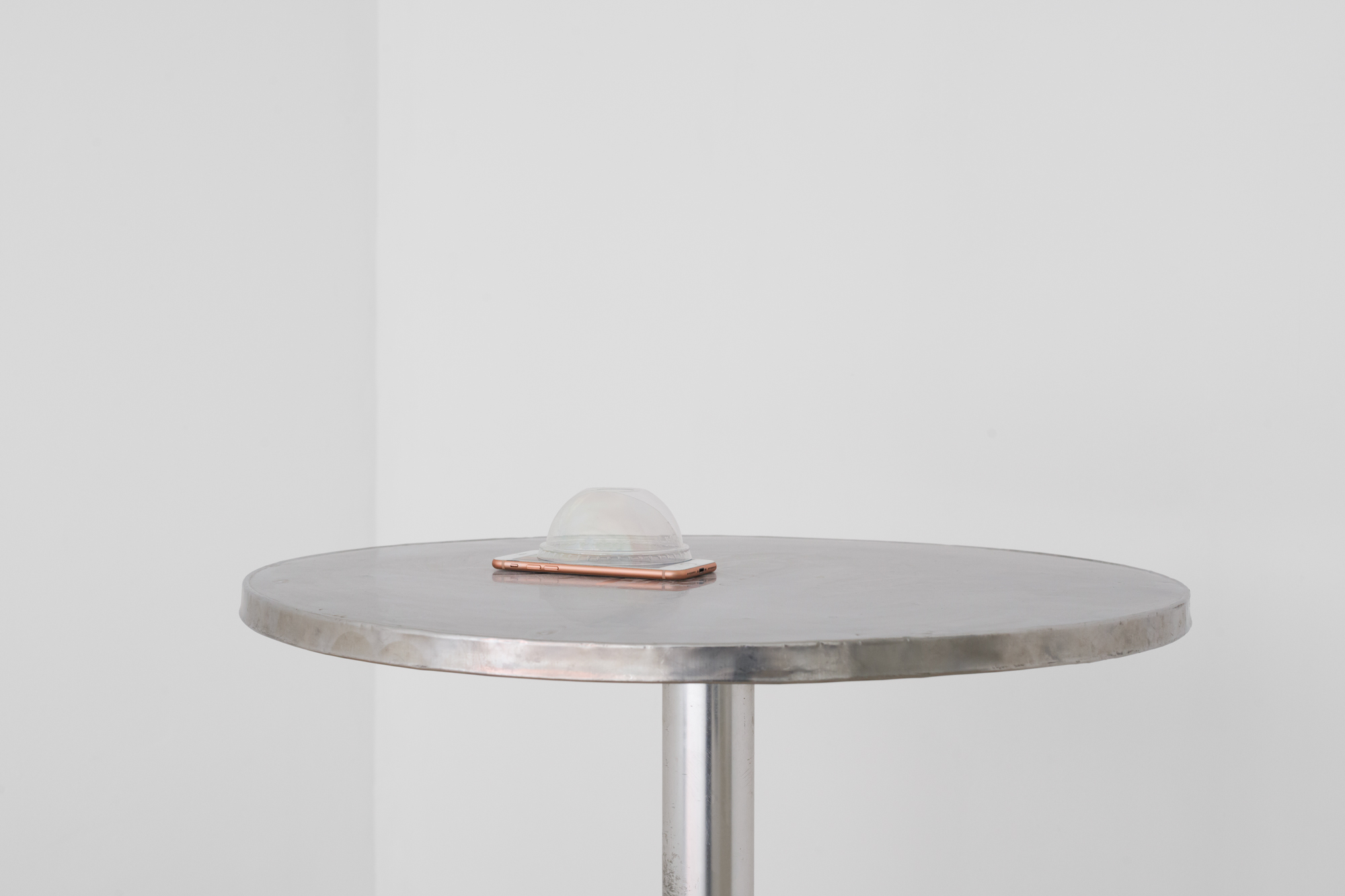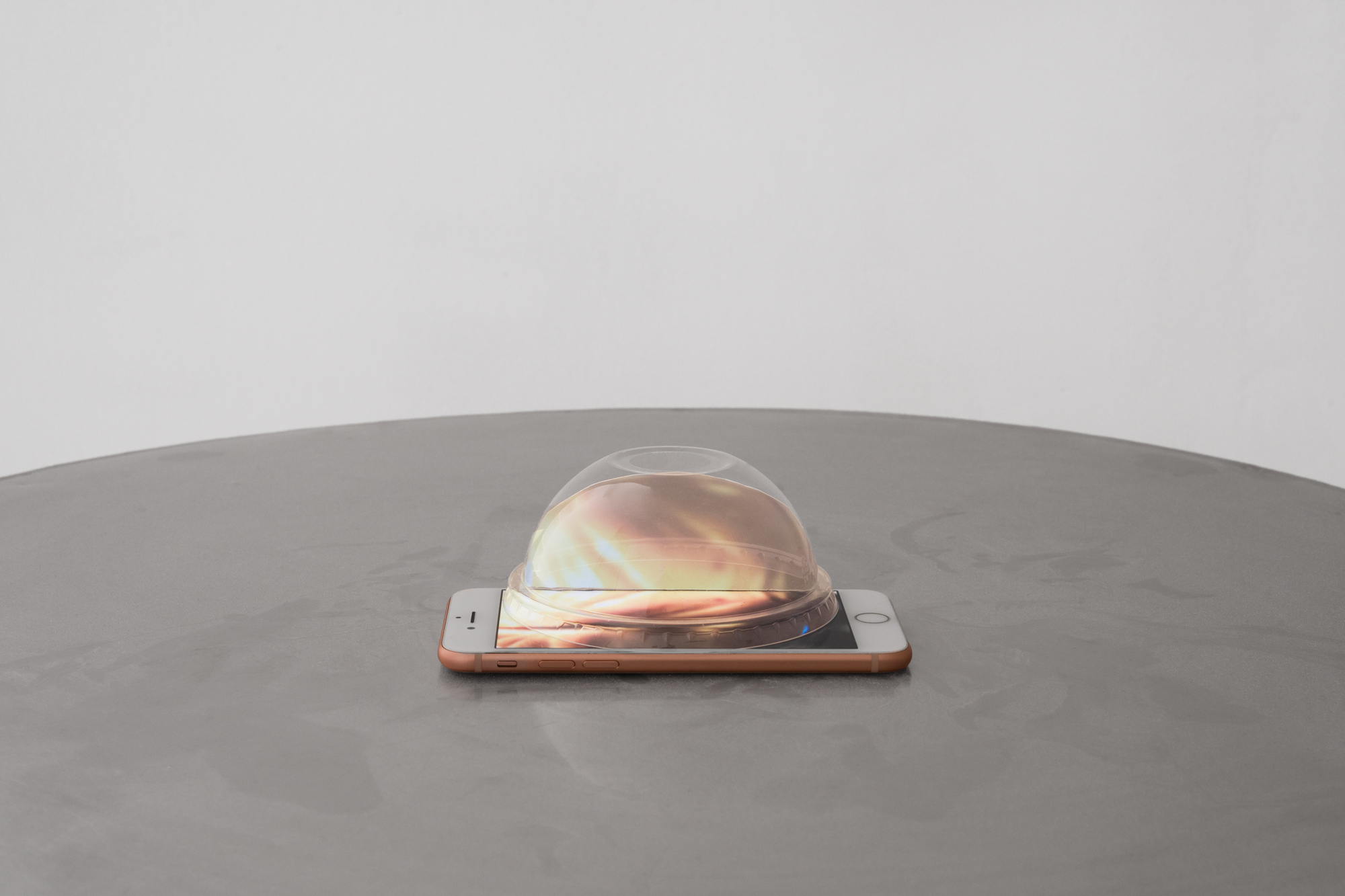 Nicole-Antonia Spagnola, Monologue, 2024. Smartphone, plastic dome lid, plastic sheet, MP4. Dimensions variable, 2:27 min.