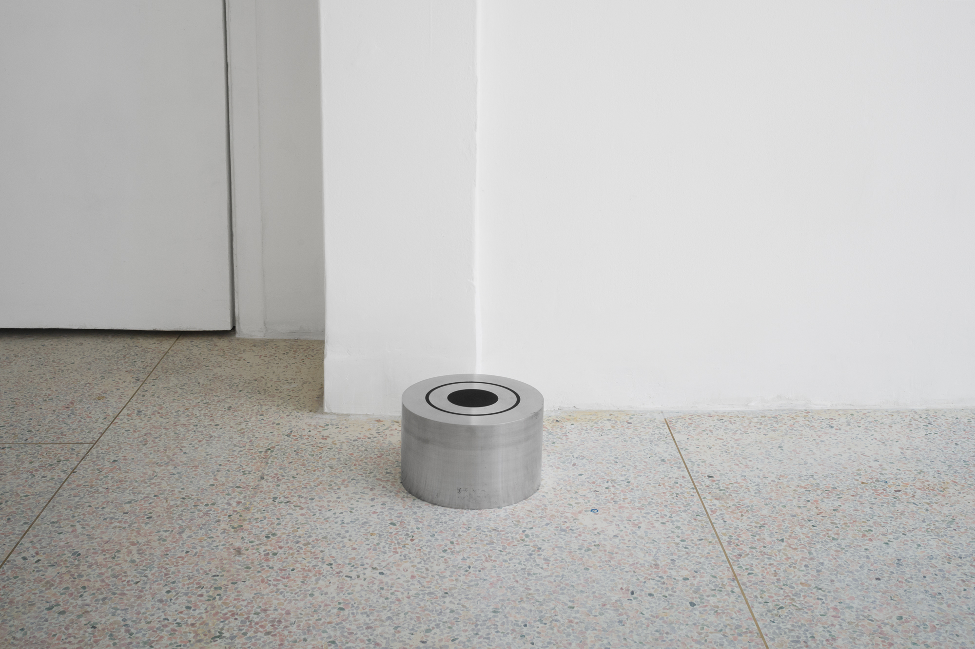 Doris Guo, Doorstop 1, 2024. Aluminum, rubber. 5 x 8 1/2 inches.