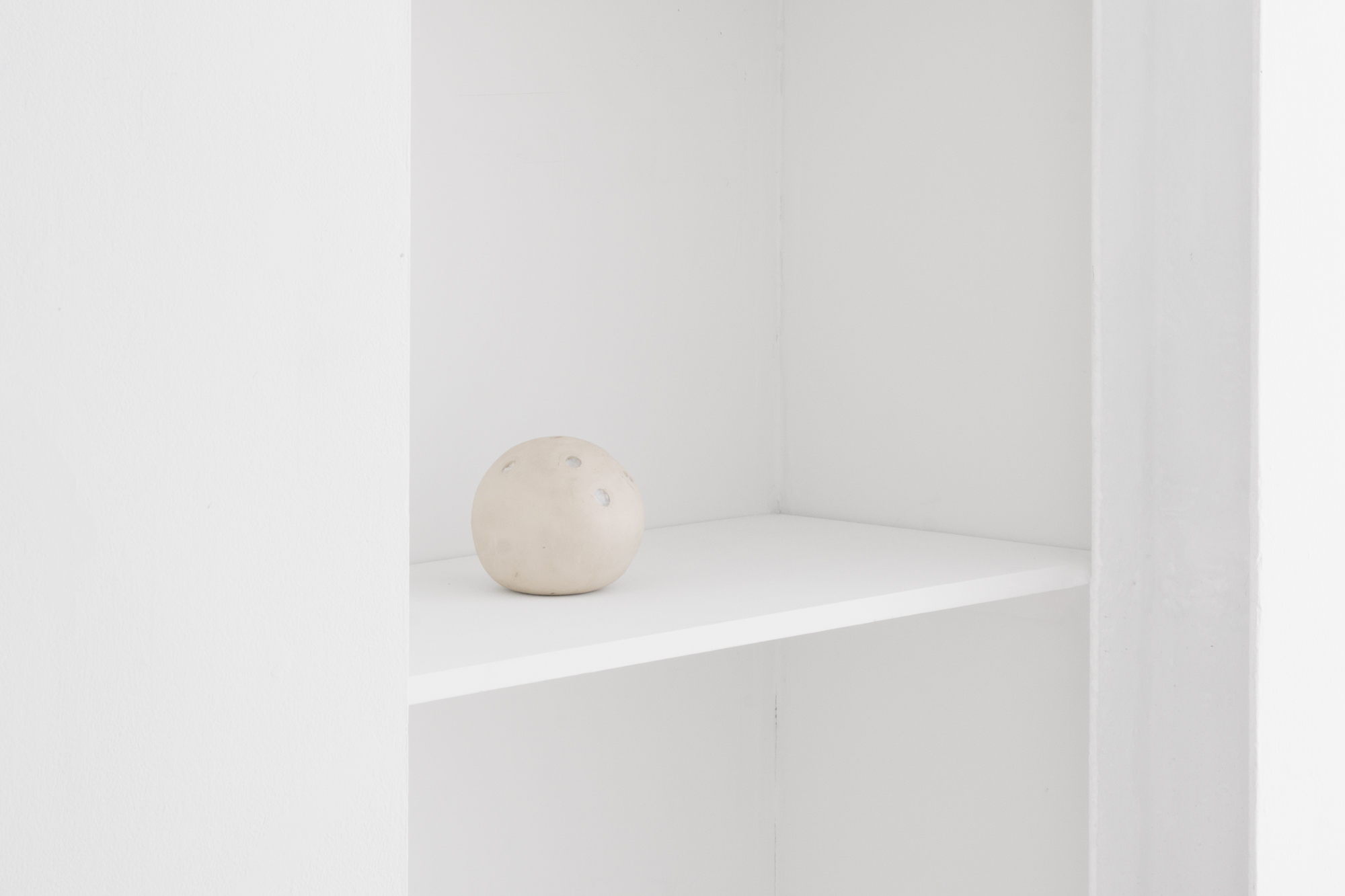 Sean Morel, currently untitled, No date. Session with sanded pottery and paper mache. 5 x 5 inches.