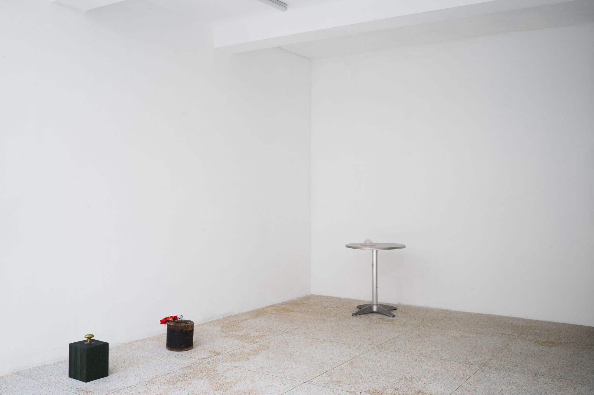 Sur le sol de la pièce à l'avant, la série de « butoirs de porte » de Doris Guo est disposée près du mur, en parallèle. Réalisées en bois, à partir d'objets trouvés ou fabriquées en acier et en caoutchouc, ces sculptures pertinentes suggèrent une série de scènes successives grâce au maintien d'une porte ouverte – leur austérité évoquant paradoxalement une atmosphère d'hospitalité ou d'invitation. Curieusement imposantes, voire surdimensionnées pour simplement maintenir une porte ouverte, elles appartiennent à la fonction utilitaire tout en la dépassant.